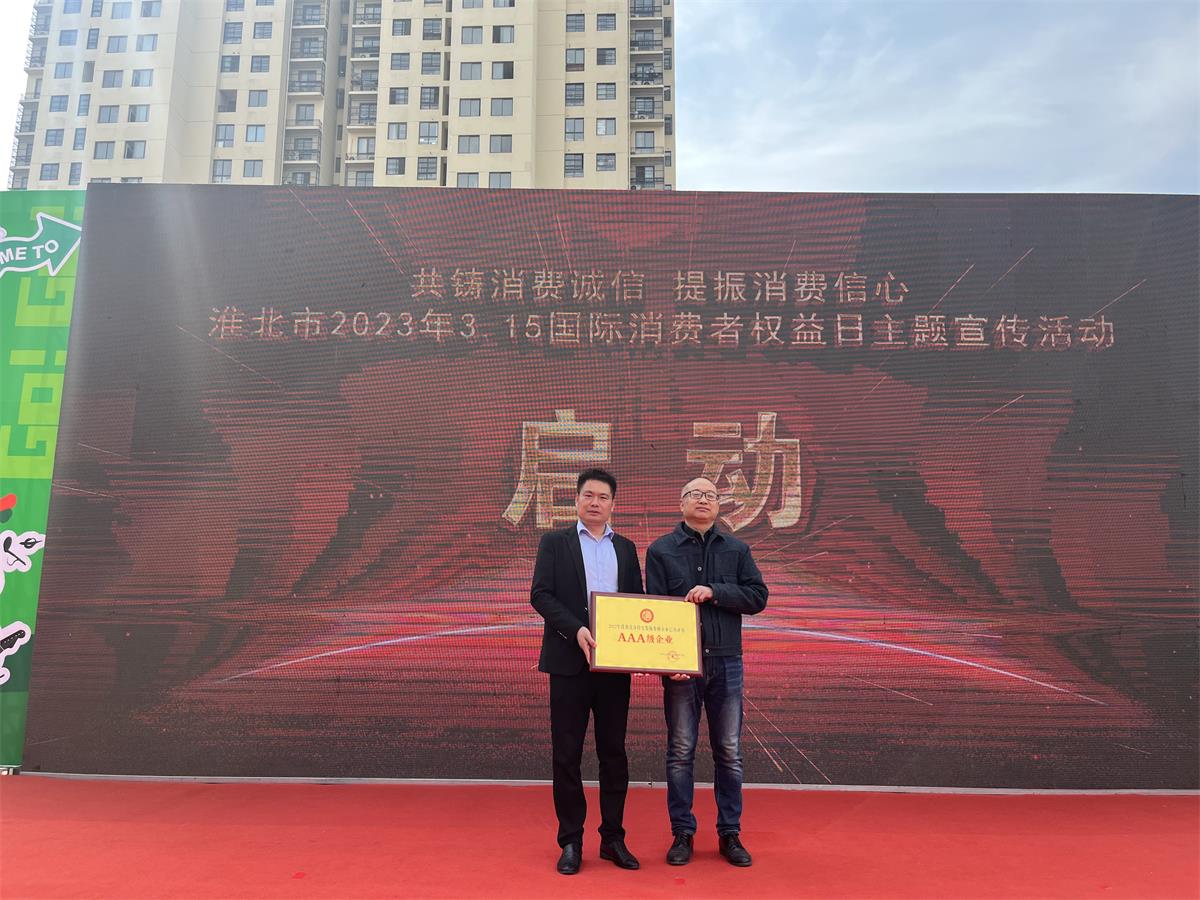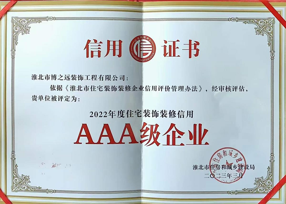 2023年3.15國際消費(fèi)者權(quán)益日即將到來之際,博之遠(yuǎn)裝飾榮獲淮北裝飾行業(yè)3A級信用評價(jià)(淮北行業(yè)最高)稱號,特此祝賀!