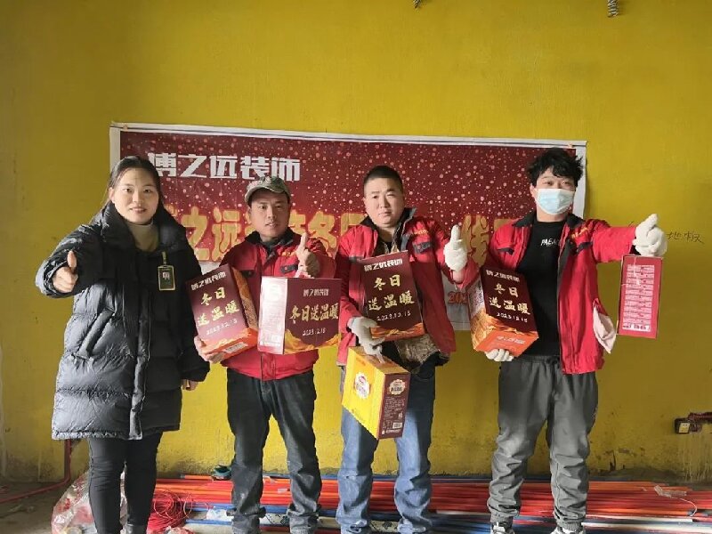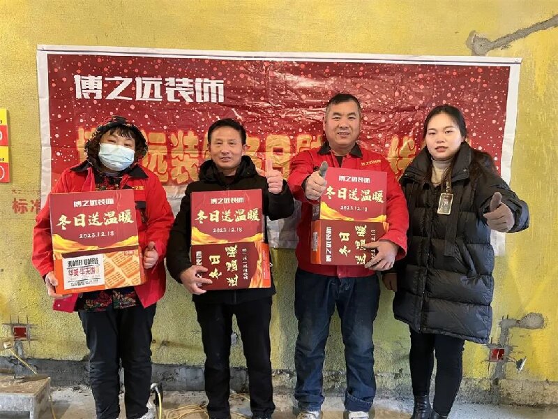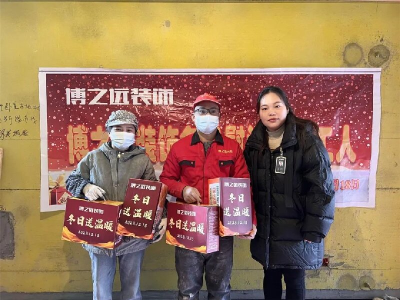 嚴(yán)寒天氣到來,博之遠(yuǎn)裝飾工人師傅依然堅(jiān)守在工地一線,12.18日早晨,博之遠(yuǎn)工作人員帶去成箱的面包、糕點(diǎn),慰問一線工人師傅,帶去冬日溫暖。